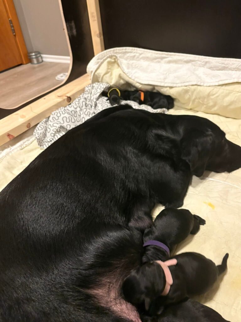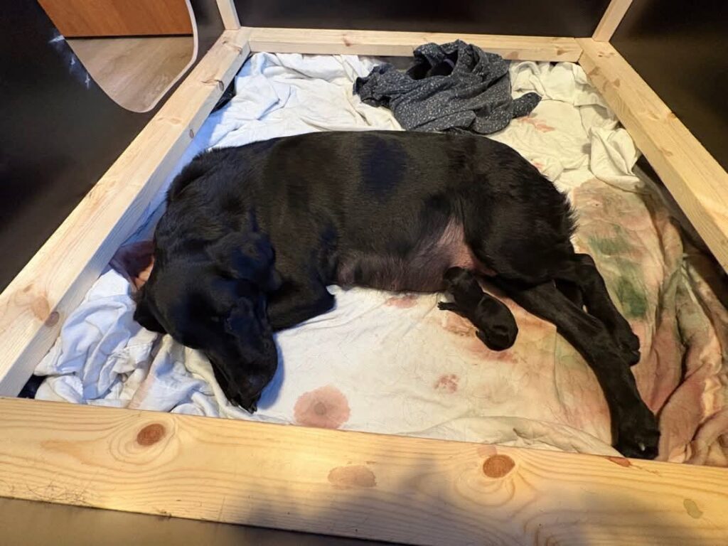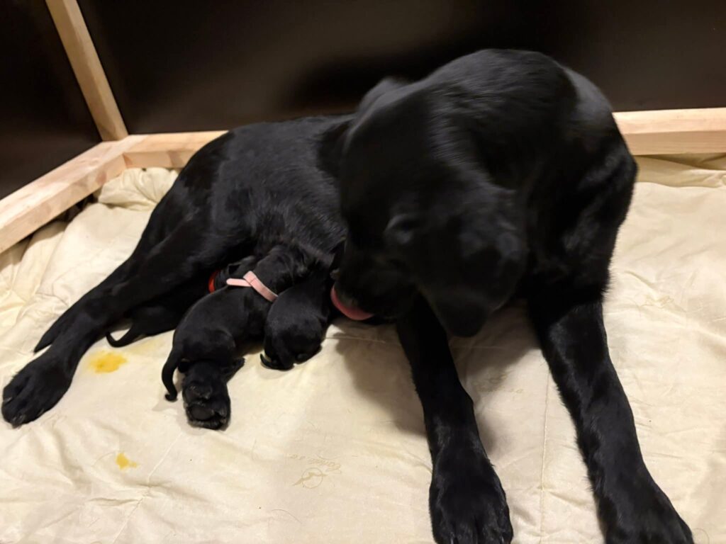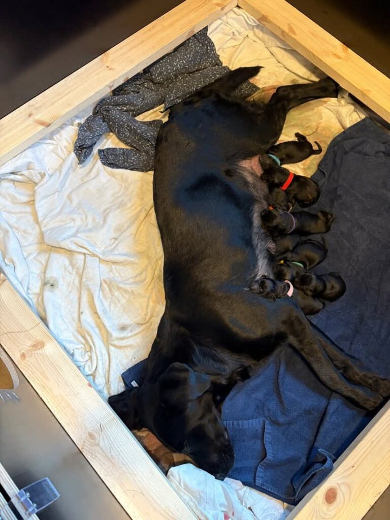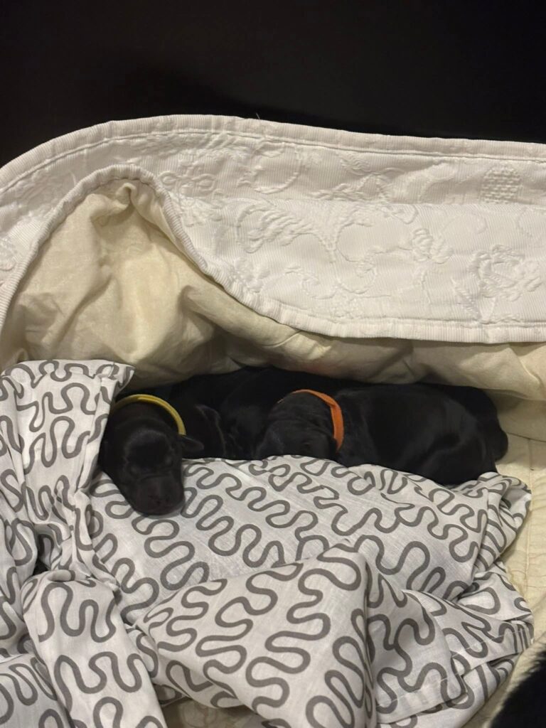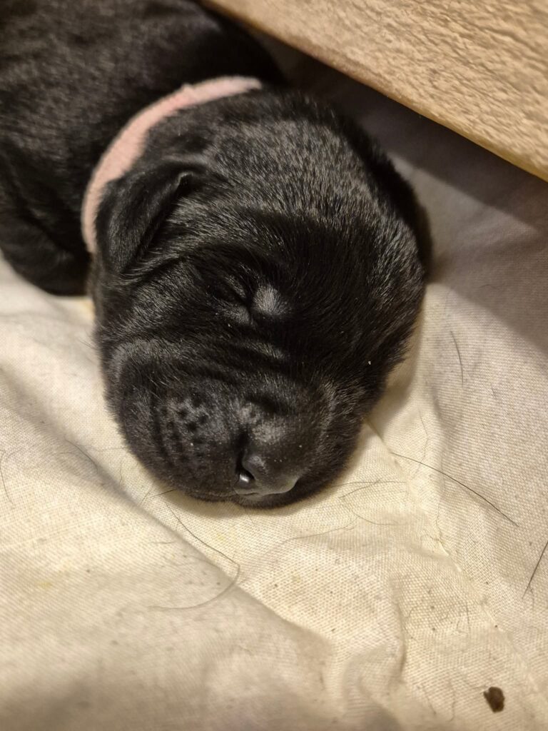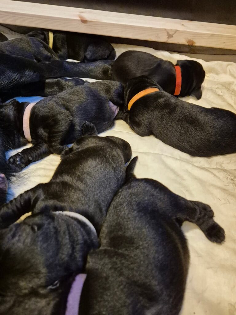 Hvolparnir 9 daga og dafna vel. Styttist í að þeir opni augun